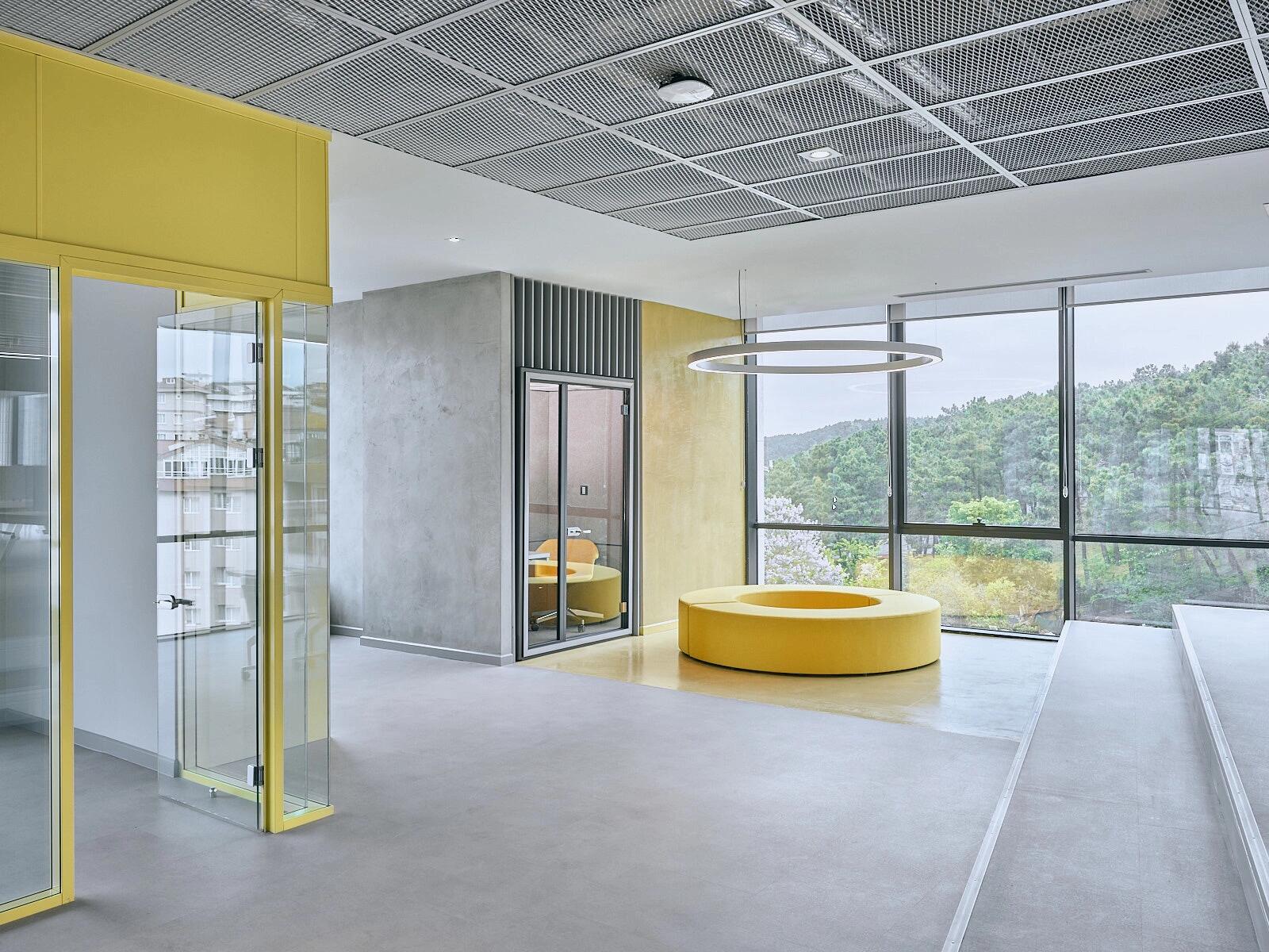 曲线、明亮和温暖,三者相互辉映,打造出一个既现代又舒适的办公空间。