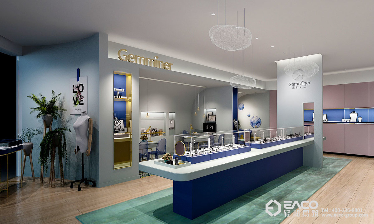 轻奢简约风的珠宝品牌,整体装修风格清新,富有活力。