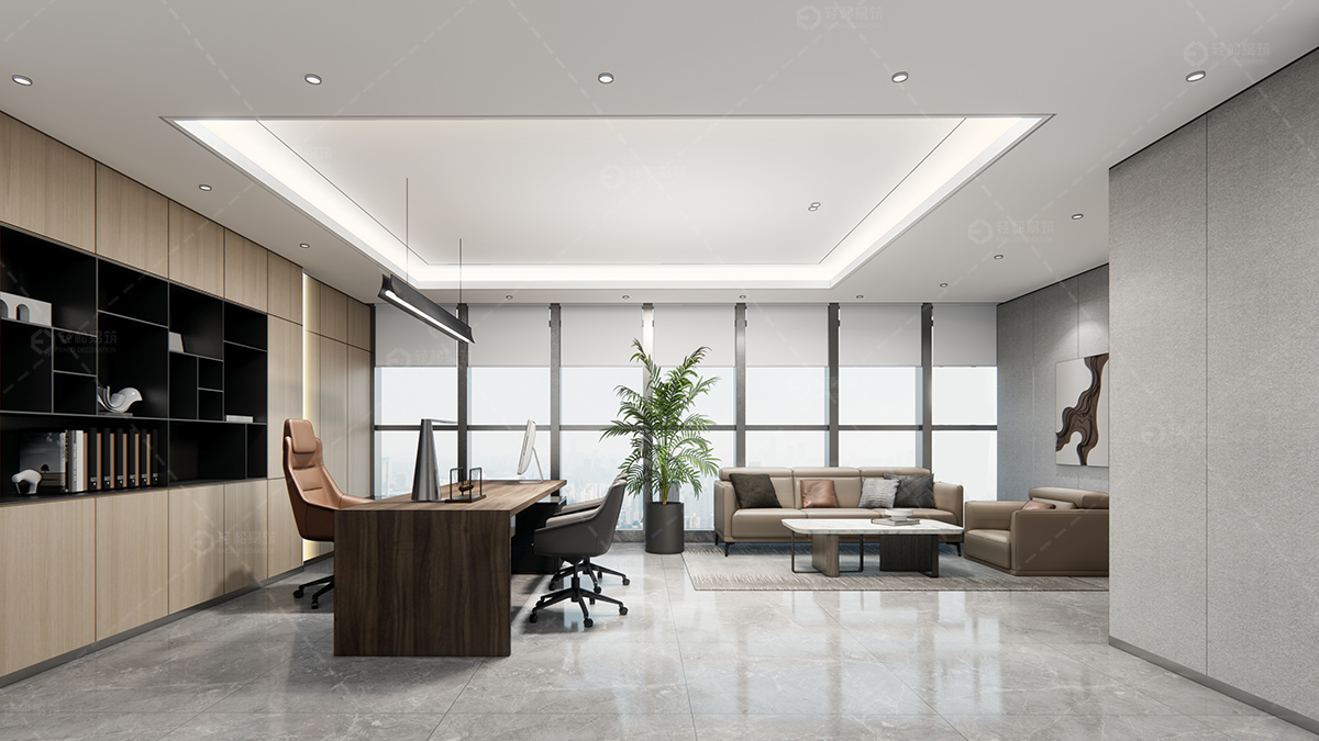 本案整体采用灰白黑三种颜色作为主色调,通过颜色的运用呈现出简约而不失格调的效果。在设计上,这个办公空间延续了整体空间的简洁、现代的调性,去除了繁杂的装饰,突显出空间的沉稳和大气感。同时,这个办公空间还赋予了更丰富、更灵活的功能性。