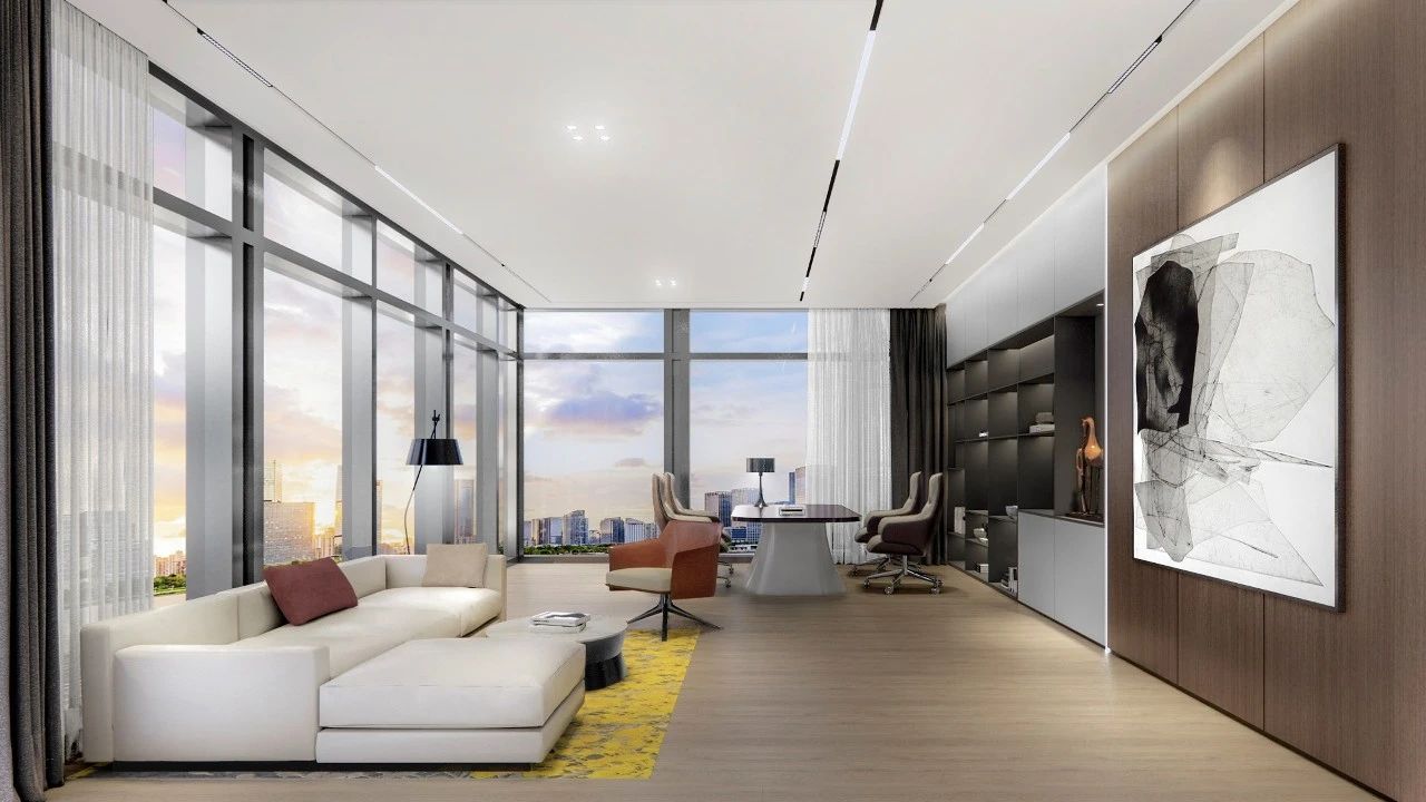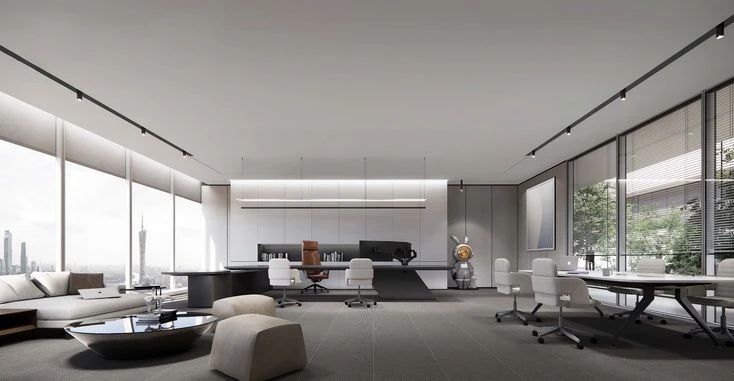 通常公司总经理办公室的造型流畅,巧妙运用线条,通过光和影的效果,在较小的空间内制造变化,在线条和光影变化间突出对心灵的冲击。